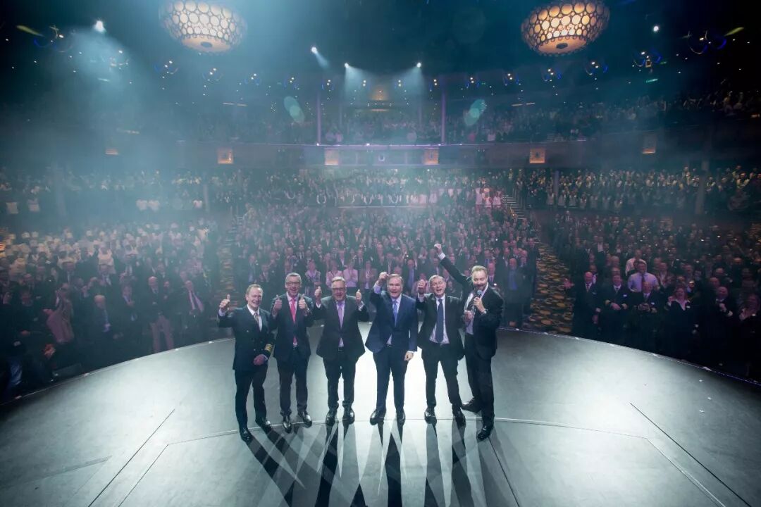 在海上交付仪式结束后,各方为业内顶尖造船师举行了庆功会,以表彰他们的努力工作和周密合作,才打造出了全球最大游轮。